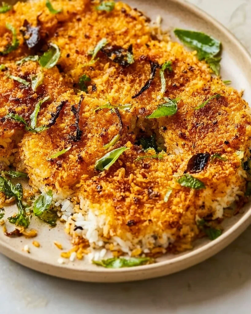 Serve the crispy rice with a generous topping of spiced chickpeas. For an added burst of freshness, sprinkle chopped cilantro or mint on top. This dish pairs nicely with a simple cucumber or tomato salad.