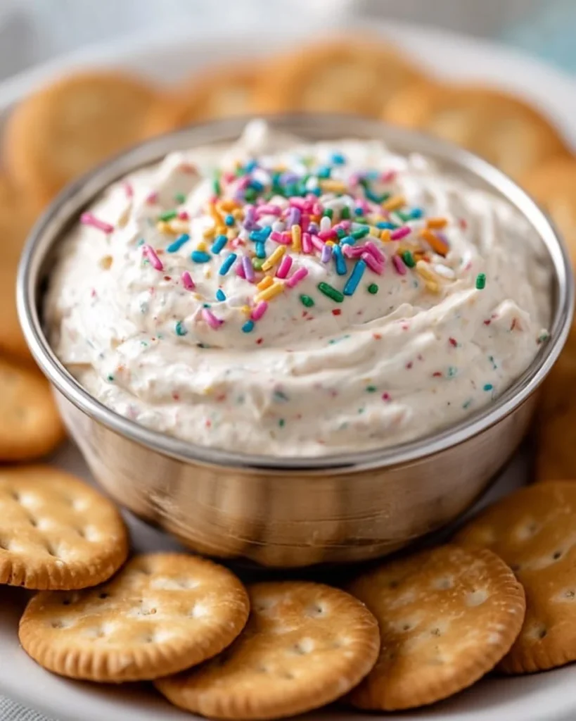 You can serve this dip in a fun bowl with colorful sprinkles on top for added flair. Use a variety of cookies like animal crackers, graham crackers, or even fresh fruit like apple slices and strawberries for dipping. This dip is versatile, so feel free to get creative with your dippers!